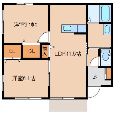 | 間取り | 2LDK 洋室6.1 洋室6.1 LDK11.5 |