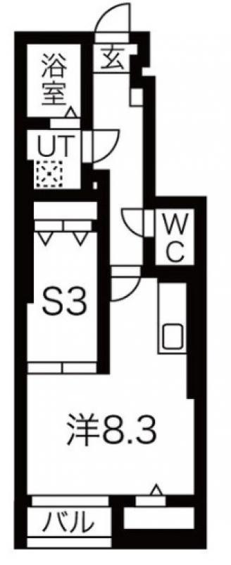 間取り | 1ワンルーム+S 洋室8.3 S3 |