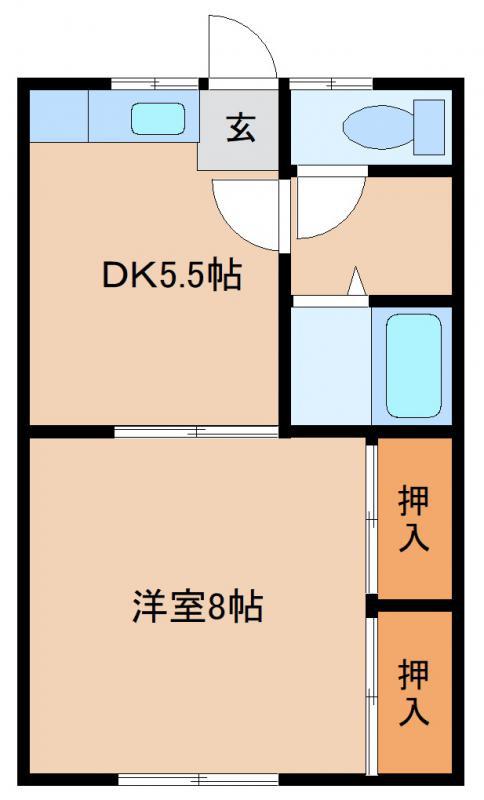| 間取り | 1DK 和室8 DK5.5 |