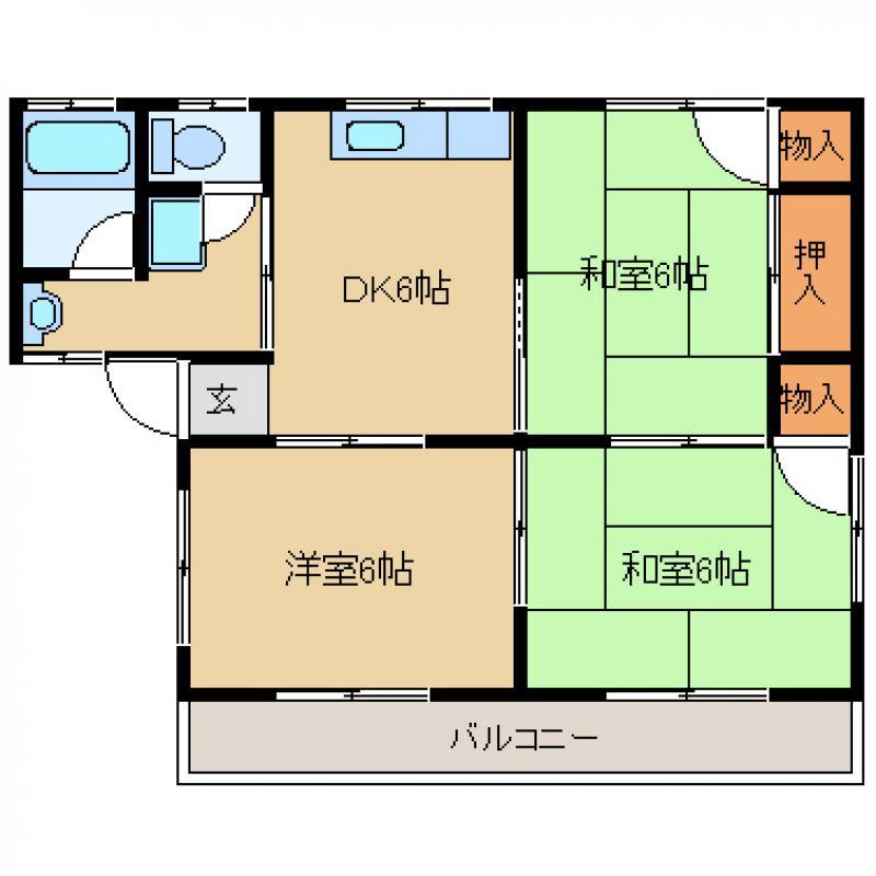 | 間取り | 3DK 和室6 和室6 洋室6 DK6 |